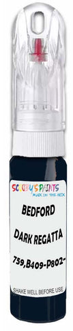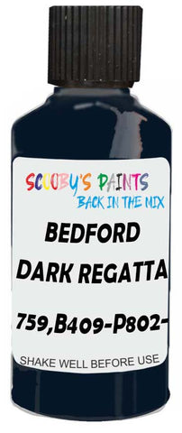 Professionally mixed touch-up paint matched to Bedford factory colour 759,B409-P802-0 – Dark Regatta for model years 1995–1999. Ideal for repairing stone chips, light scratches and minor blemishes while helping to prevent corrosion.