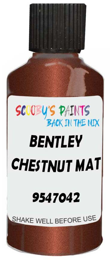 Professionally mixed touch-up paint matched to Bentley factory colour 9547042 – Chestnut Mat for model years 1999–2001. Ideal for repairing stone chips, light scratches and minor blemishes while helping to prevent corrosion.