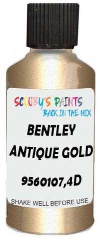 Professionally mixed touch-up paint matched to Bentley factory colour 9560107,4D – Antique Gold Metallic for model years 2004–2014. Ideal for repairing stone chips, light scratches and minor blemishes while helping to prevent corrosion.
