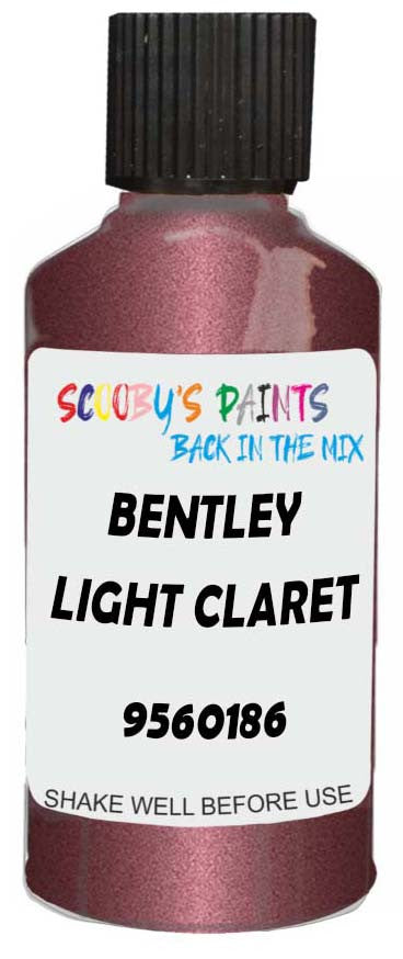 Professionally mixed touch-up paint matched to Bentley factory colour 9560186 – Light Claret Pearl for model years 2011–2016. Ideal for repairing stone chips, light scratches and minor blemishes while helping to prevent corrosion.