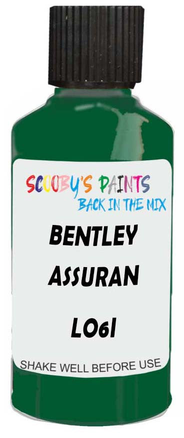 Professionally mixed touch-up paint matched to Bentley factory colour LO6I – Assuran Green for model years 2009–2010. Ideal for repairing stone chips, light scratches and minor blemishes while helping to prevent corrosion.
