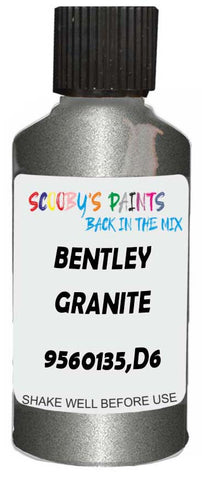 Professionally mixed touch-up paint matched to Bentley factory colour 9560135,D6 – Granite Metallic for model years 2007–2023. Ideal for repairing stone chips, light scratches and minor blemishes while helping to prevent corrosion.