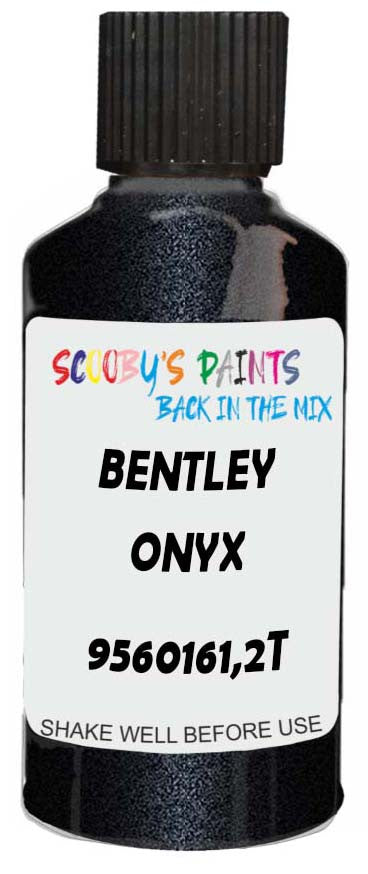 Professionally mixed touch-up paint matched to Bentley factory colour 9560161,2T – Onyx for model years 2008–2018. Ideal for repairing stone chips, light scratches and minor blemishes while helping to prevent corrosion.