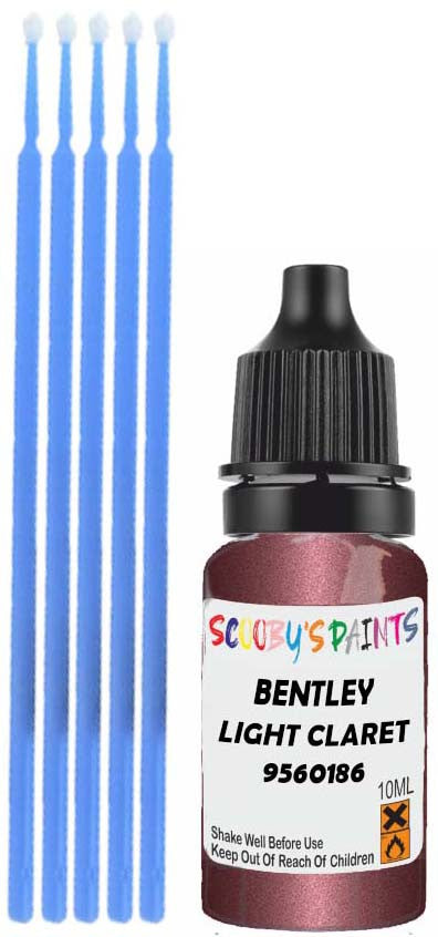 Professionally mixed touch-up paint matched to Bentley factory colour 9560186 – Light Claret Pearl for model years 2011–2016. Ideal for repairing stone chips, light scratches and minor blemishes while helping to prevent corrosion.