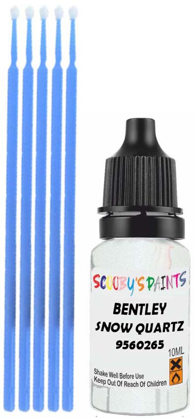 Professionally mixed touch-up paint matched to Bentley factory colour 9560265 – Snow Quartz Pearlescent for model years 2020–2023. Ideal for repairing stone chips, light scratches and minor blemishes while helping to prevent corrosion.