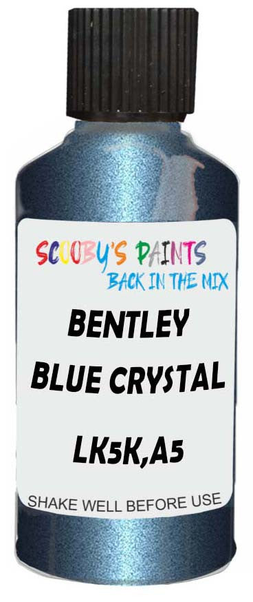 Professionally mixed touch-up paint matched to Bentley factory colour LK5K,A5 – Blue Crystal Metallic for model years 2009–2019. Ideal for repairing stone chips, light scratches and minor blemishes while helping to prevent corrosion.