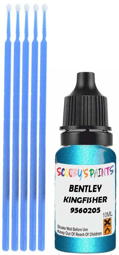 Professionally mixed touch-up paint matched to Bentley factory colour 9560205 – Kingfisher Metallic for model years 2010–2023. Ideal for repairing stone chips, light scratches and minor blemishes while helping to prevent corrosion.
