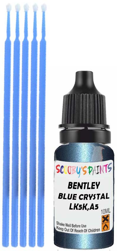 Professionally mixed touch-up paint matched to Bentley factory colour LK5K,A5 – Blue Crystal Metallic for model years 2009–2019. Ideal for repairing stone chips, light scratches and minor blemishes while helping to prevent corrosion.