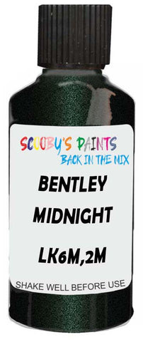 Professionally mixed touch-up paint matched to Bentley factory colour LK6M,2M – Midnight Emerald Metallic for model years 2004–2016. Ideal for repairing stone chips, light scratches and minor blemishes while helping to prevent corrosion.