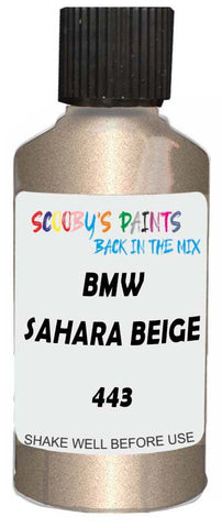 Professionally mixed touch-up paint matched to Bmw factory colour 443 – Sahara Beige Metallic for model years 1999–2001. Ideal for repairing stone chips, light scratches and minor blemishes while helping to prevent corrosion.