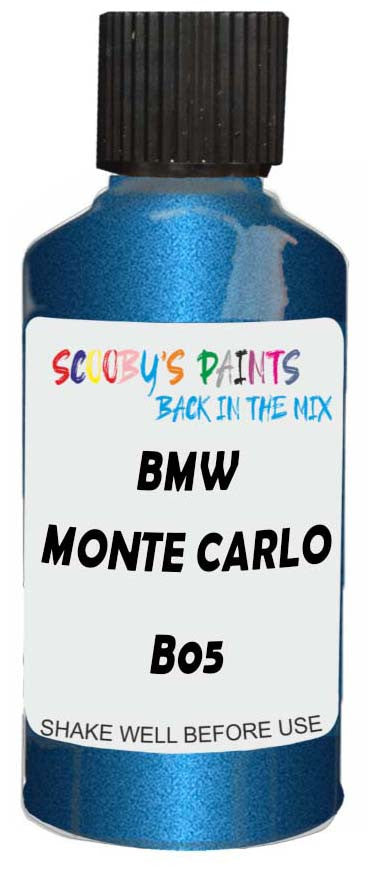 Professionally mixed touch-up paint matched to Bmw factory colour B05 – Monte Carlo Blue Metallic for model years 2009–2016. Ideal for repairing stone chips, light scratches and minor blemishes while helping to prevent corrosion.