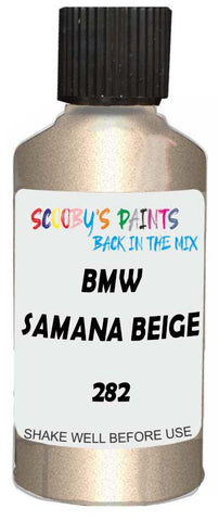 Professionally mixed touch-up paint matched to Bmw factory colour 282 – Samana Beige Metallic for model years 1993–1999. Ideal for repairing stone chips, light scratches and minor blemishes while helping to prevent corrosion.