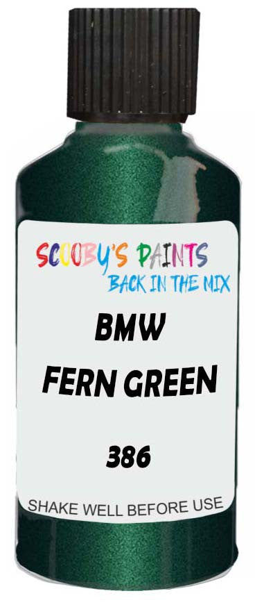 Professionally mixed touch-up paint matched to Bmw factory colour 386 – Fern Green Metallic for model years 1996–2002. Ideal for repairing stone chips, light scratches and minor blemishes while helping to prevent corrosion.