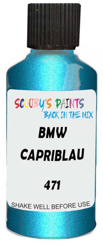 Professionally mixed touch-up paint matched to Bmw factory colour 471 – Capriblau Metallic for model years 2001–2003. Ideal for repairing stone chips, light scratches and minor blemishes while helping to prevent corrosion.