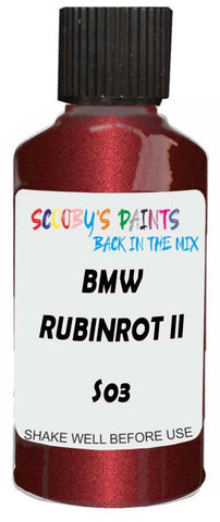 Professionally mixed touch-up paint matched to Bmw factory colour S03 – Rubinrot Ii Metallic for model years 2003–2017. Ideal for repairing stone chips, light scratches and minor blemishes while helping to prevent corrosion.