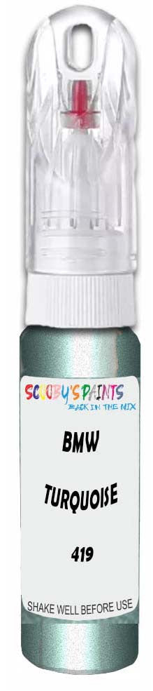 Professionally mixed touch-up paint matched to Bmw factory colour 419 – Turquoise Metallic for model years 1999–2000. Ideal for repairing stone chips, light scratches and minor blemishes while helping to prevent corrosion.