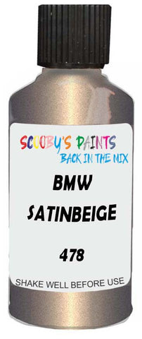 Professionally mixed touch-up paint matched to Bmw factory colour 478 – Satinbeige Metallic for model years 2002–2002. Ideal for repairing stone chips, light scratches and minor blemishes while helping to prevent corrosion.