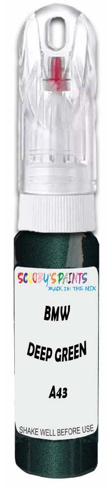 Professionally mixed touch-up paint matched to Bmw factory colour A43 – Deep Green Metallic for model years 2005–2022. Ideal for repairing stone chips, light scratches and minor blemishes while helping to prevent corrosion.