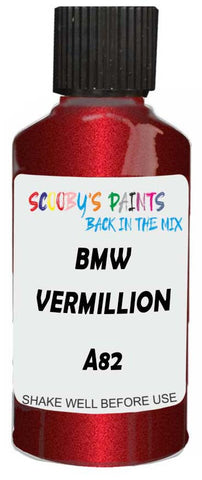 Professionally mixed touch-up paint matched to Bmw factory colour A82 – Vermillion Red Metallic for model years 2008–2016. Ideal for repairing stone chips, light scratches and minor blemishes while helping to prevent corrosion.