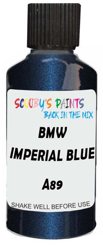 Professionally mixed touch-up paint matched to Bmw factory colour A89 – Imperial Blue Metallic for model years 2008–2022. Ideal for repairing stone chips, light scratches and minor blemishes while helping to prevent corrosion.
