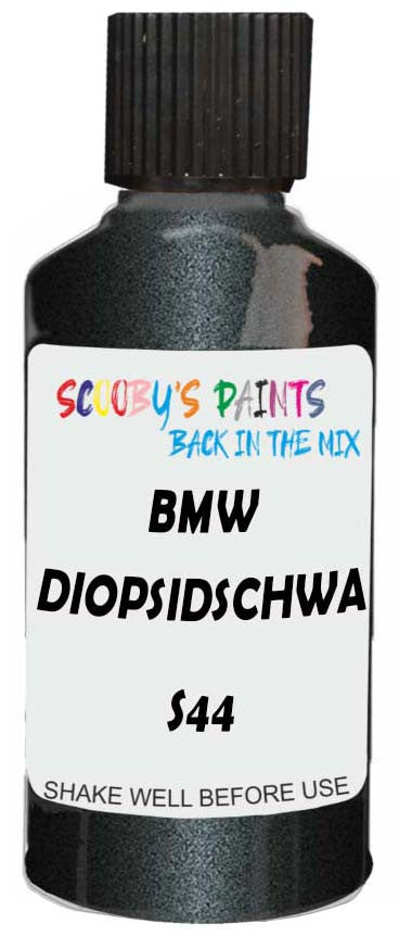 Professionally mixed touch-up paint matched to Bmw factory colour S44 – Diopsidschwarz Metallic for model years 2004–2010. Ideal for repairing stone chips, light scratches and minor blemishes while helping to prevent corrosion.