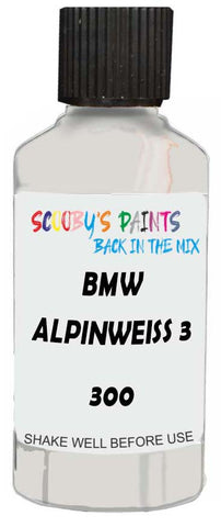 Professionally mixed touch-up paint matched to Bmw factory colour 300 – Alpinweiss 3 for model years 1994–2018. Ideal for repairing stone chips, light scratches and minor blemishes while helping to prevent corrosion.