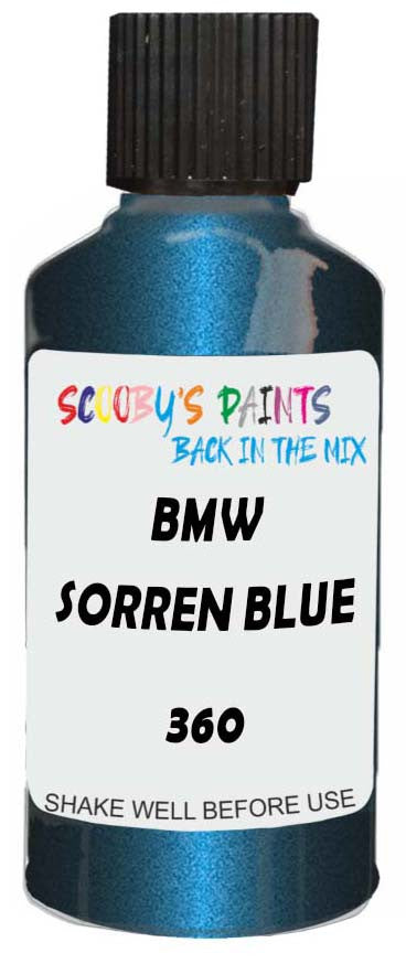Professionally mixed touch-up paint matched to Bmw factory colour 360 – Sorren Blue Metallic for model years 1988–2003. Ideal for repairing stone chips, light scratches and minor blemishes while helping to prevent corrosion.