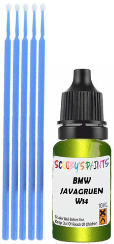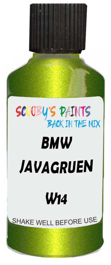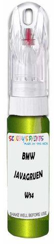 Professionally mixed touch-up paint matched to Bmw factory colour W14 – Javagruen Metallic for model years 2009–2021. Ideal for repairing stone chips, light scratches and minor blemishes while helping to prevent corrosion.