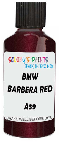 Professionally mixed touch-up paint matched to Bmw factory colour A39 – Barbera Red Metallic for model years 2005–2011. Ideal for repairing stone chips, light scratches and minor blemishes while helping to prevent corrosion.