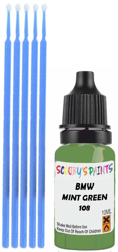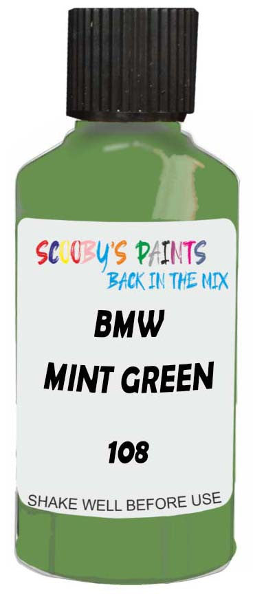 Professionally mixed touch-up paint matched to Bmw factory colour 108 – Mint Green for model years 1976–1990. Ideal for repairing stone chips, light scratches and minor blemishes while helping to prevent corrosion.