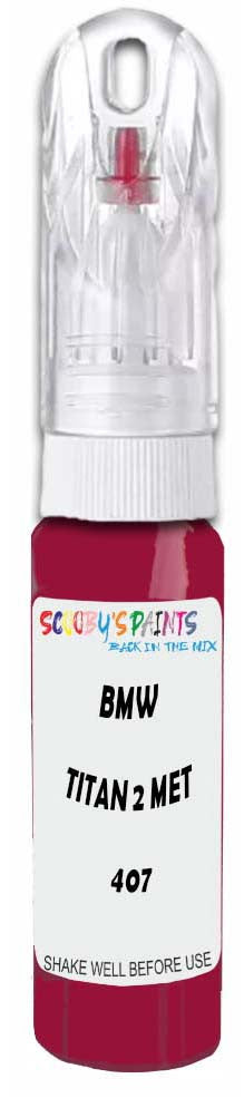 Professionally mixed touch-up paint matched to Bmw factory colour 407 – Titan 2 Met Matt for model years 1998–1998. Ideal for repairing stone chips, light scratches and minor blemishes while helping to prevent corrosion.
