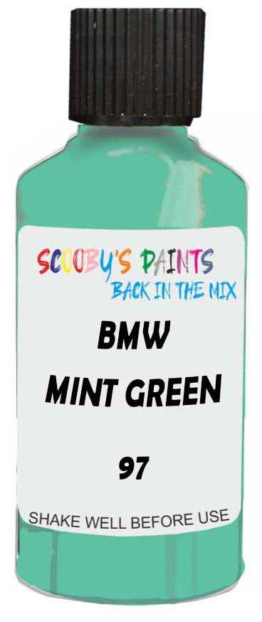 Professionally mixed touch-up paint matched to Bmw factory colour 97 – Mint Green for model years 1974–1998. Ideal for repairing stone chips, light scratches and minor blemishes while helping to prevent corrosion.