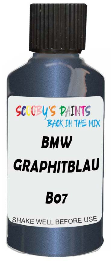 Professionally mixed touch-up paint matched to Bmw factory colour B07 – Graphitblau Metallic for model years 2010–2013. Ideal for repairing stone chips, light scratches and minor blemishes while helping to prevent corrosion.