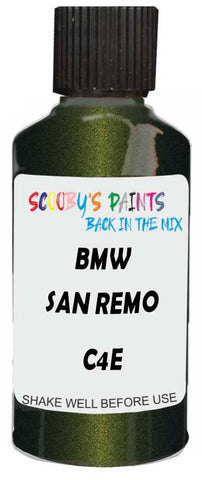 Professionally mixed touch-up paint matched to Bmw factory colour C4E – San Remo Green Metallic for model years 2020–2024. Ideal for repairing stone chips, light scratches and minor blemishes while helping to prevent corrosion.