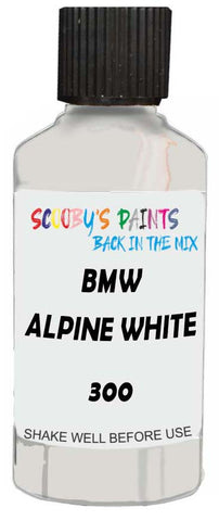 Professionally mixed touch-up paint matched to Bmw factory colour 300 – Alpine White 3 for model years 1994–2022. Ideal for repairing stone chips, light scratches and minor blemishes while helping to prevent corrosion.