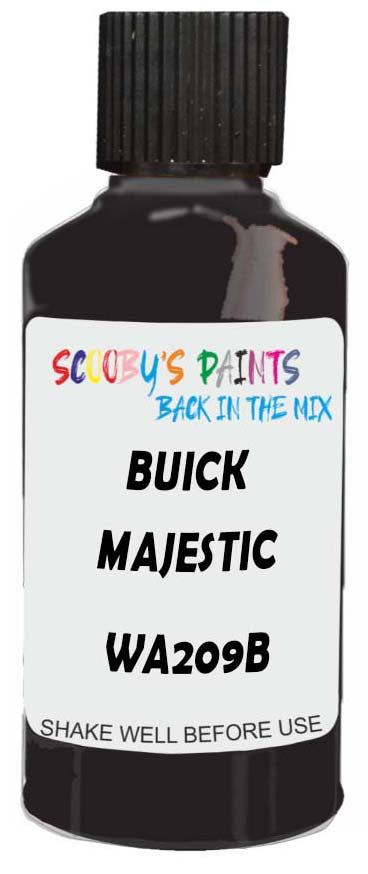 Professionally mixed touch-up paint matched to Buick factory colour Wa209B – Majestic Amethyst Mat for model years 1995–2009. Ideal for repairing stone chips, light scratches and minor blemishes while helping to prevent corrosion.