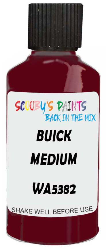 Professionally mixed touch-up paint matched to Buick factory colour Wa5382 – Medium Garnet Red Mat for model years 1987–2011. Ideal for repairing stone chips, light scratches and minor blemishes while helping to prevent corrosion.