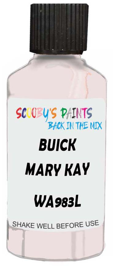 Professionally mixed touch-up paint matched to Buick factory colour Wa983L – Mary Kay Pearl Iii Tricoat for model years 2004–2007. Ideal for repairing stone chips, light scratches and minor blemishes while helping to prevent corrosion.
