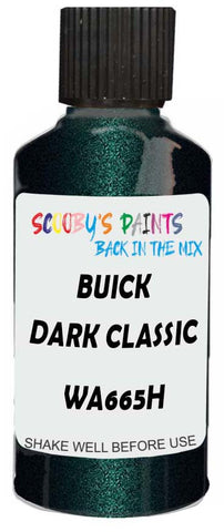 Professionally mixed touch-up paint matched to Buick factory colour Wa665H – Dark Classic Green for model years 2001–2001. Ideal for repairing stone chips, light scratches and minor blemishes while helping to prevent corrosion.
