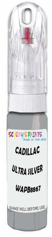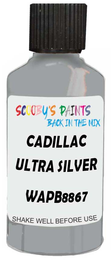 Professionally mixed touch-up paint matched to Cadillac factory colour Wapb8867 – Ultra Silver Met Semi-Gloss for model years 1999–2017. Ideal for repairing stone chips, light scratches and minor blemishes while helping to prevent corrosion.