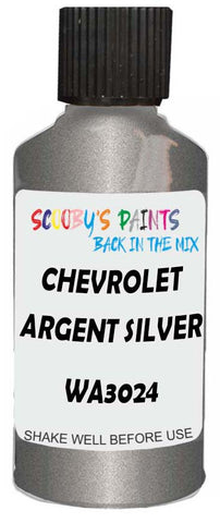 Professionally mixed touch-up paint matched to Chevrolet factory colour Wa3024 – Argent Silver Met Mat for model years 1970–2011. Ideal for repairing stone chips, light scratches and minor blemishes while helping to prevent corrosion.