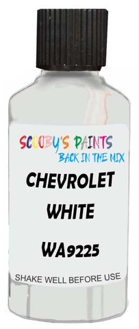 Professionally mixed touch-up paint matched to Chevrolet factory colour Wa9225 – White for model years 1988–2001. Ideal for repairing stone chips, light scratches and minor blemishes while helping to prevent corrosion.