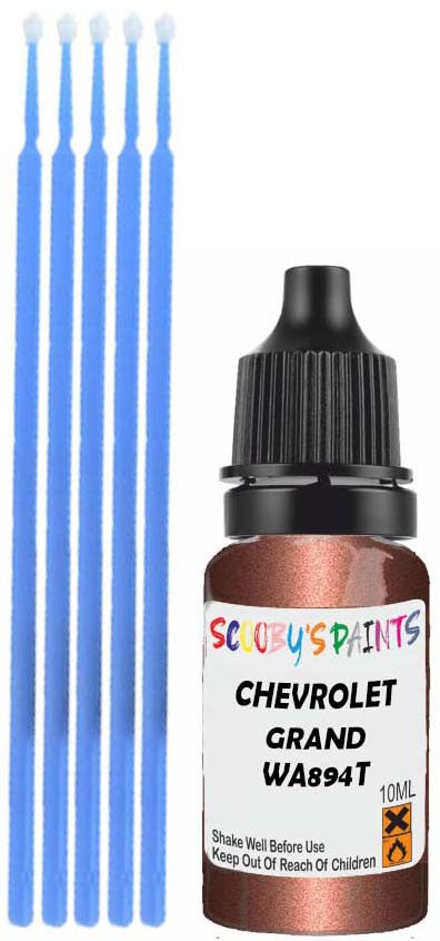 Professionally mixed touch-up paint matched to Chevrolet factory colour Wa894T – Grand Canyon Brown Metallic for model years 2011–2012. Ideal for repairing stone chips, light scratches and minor blemishes while helping to prevent corrosion.