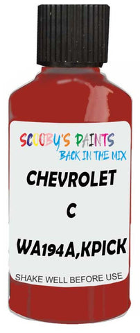 Professionally mixed touch-up paint matched to Chevrolet factory colour Wa194A,Kpickup Victory Red – C for model years 1985–2003. Ideal for repairing stone chips, light scratches and minor blemishes while helping to prevent corrosion.