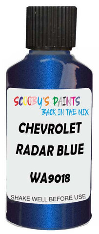 Professionally mixed touch-up paint matched to Chevrolet factory colour Wa9018 – Radar Blue Metallic for model years 1992–1998. Ideal for repairing stone chips, light scratches and minor blemishes while helping to prevent corrosion.