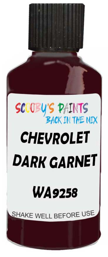 Professionally mixed touch-up paint matched to Chevrolet factory colour Wa9258 – Dark Garnet for model years 1989–1989. Ideal for repairing stone chips, light scratches and minor blemishes while helping to prevent corrosion.