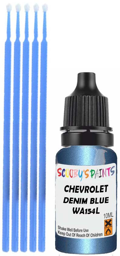 Professionally mixed touch-up paint matched to Chevrolet factory colour Wa154L – Denim Blue Pearl Metallic for model years 2004–2010. Ideal for repairing stone chips, light scratches and minor blemishes while helping to prevent corrosion.
