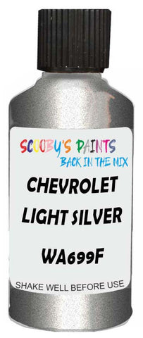 Professionally mixed touch-up paint matched to Chevrolet factory colour Wa699F – Light Silver Metallic for model years 2016–2019. Ideal for repairing stone chips, light scratches and minor blemishes while helping to prevent corrosion.