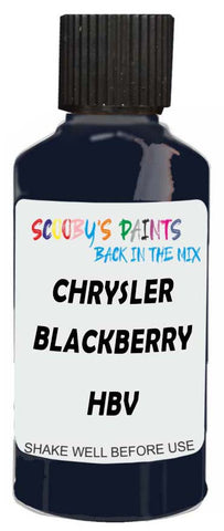 Professionally mixed touch-up paint matched to Chrysler factory colour Hbv – Blackberry Pearl for model years 2010–2016. Ideal for repairing stone chips, light scratches and minor blemishes while helping to prevent corrosion.