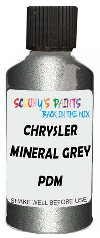 Professionally mixed touch-up paint matched to Chrysler factory colour Pdm – Mineral Grey Metallic for model years 2004–2015. Ideal for repairing stone chips, light scratches and minor blemishes while helping to prevent corrosion.